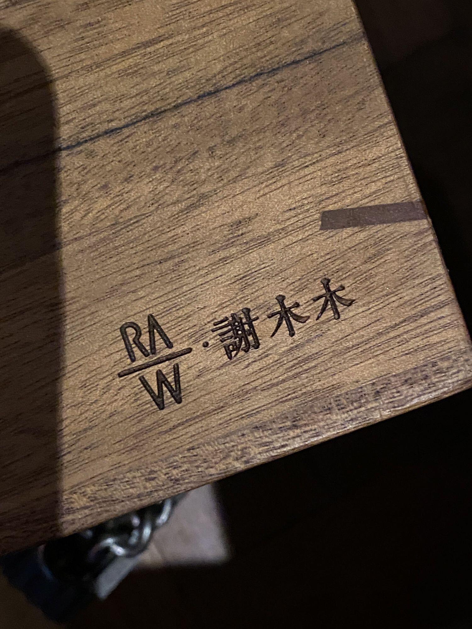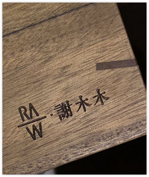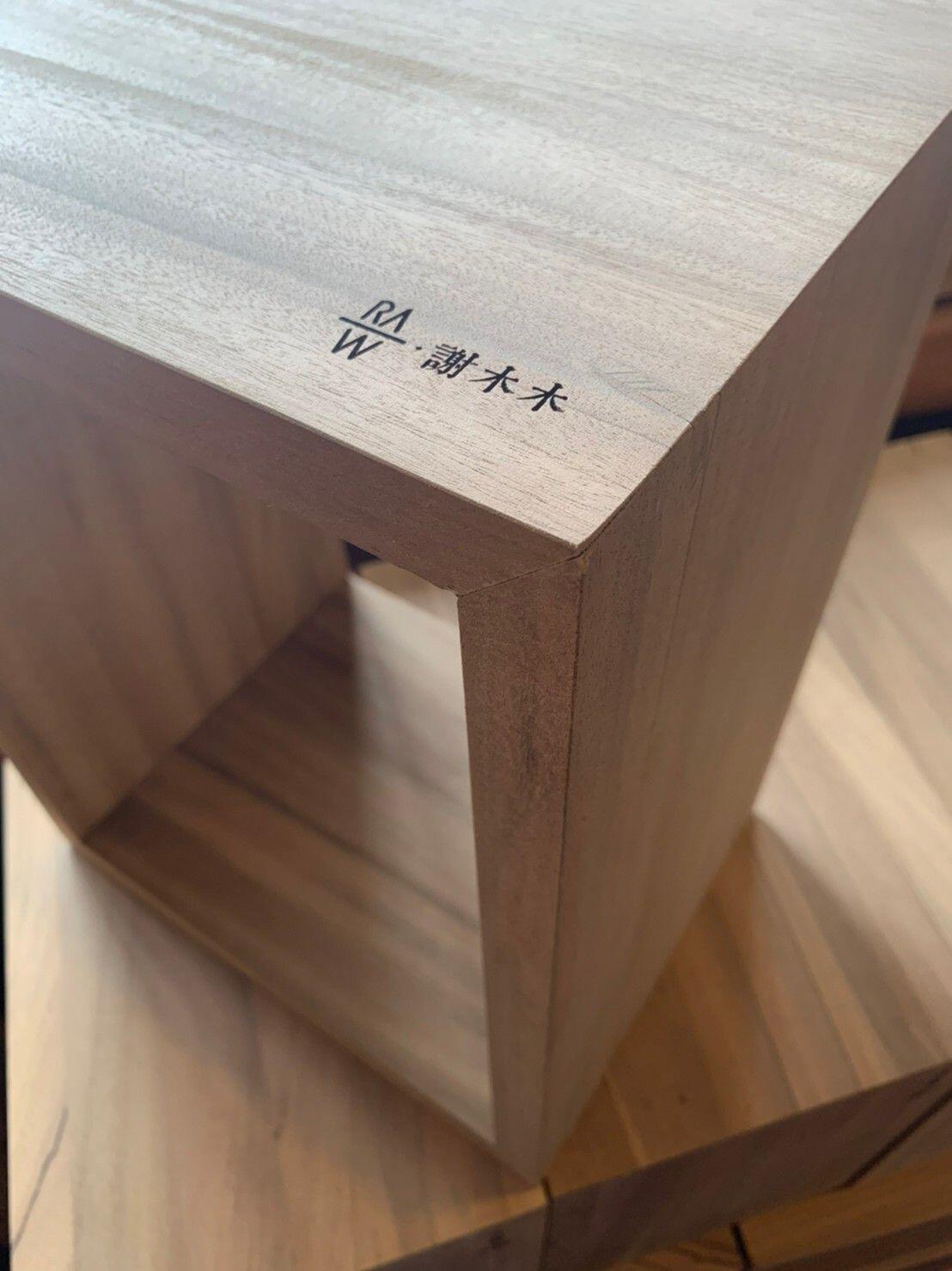 精緻手工卡榫製作,為了讓顏色更加飽和塗裝採用天然木蠟油塗裝而成。比例樣式是以Chef Andre親自設計 ,擺放在RAW裡面,整體協調好看。
