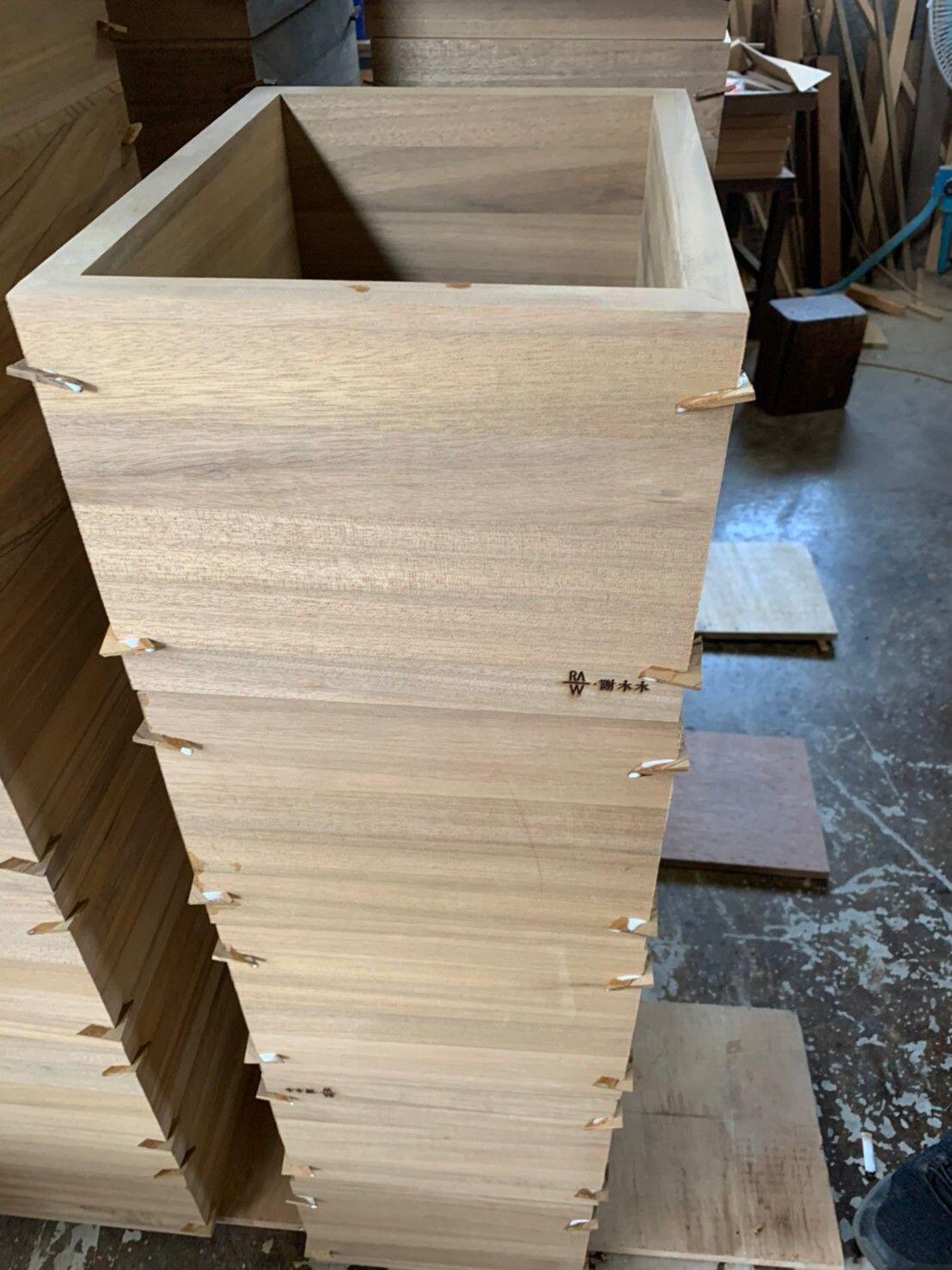天然原木雨豆木,搭配精緻手工卡榫製作,為了讓顏色更加飽和塗裝採用天然木蠟油塗裝而成。