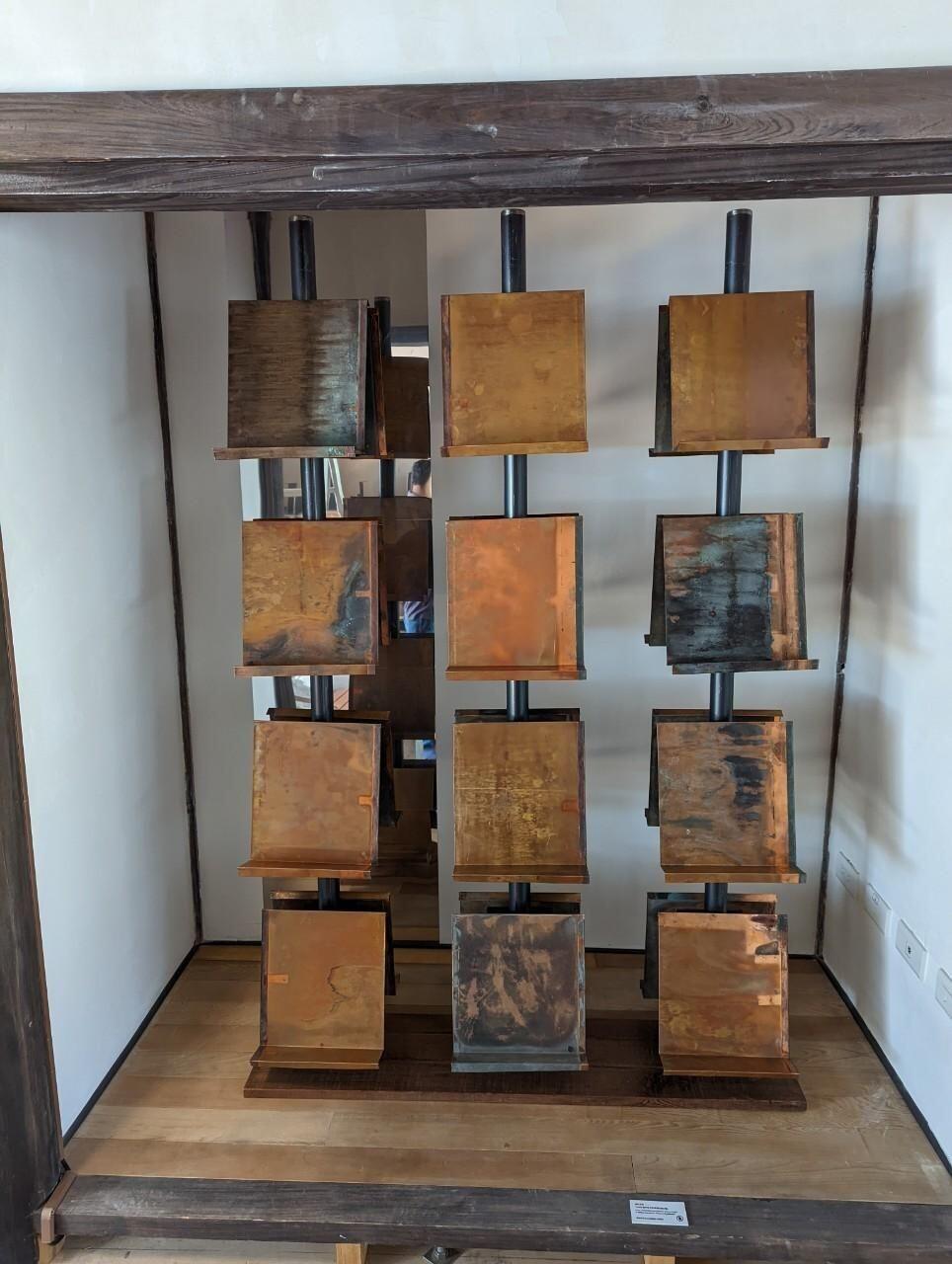 材料上是 台南市文資建材銀行所提供,親自挑選能使用的材料 ,再加以利用 銅瓦片、木樑結構、床板料、舊書桌跟還有些不能確定當初用途的材料