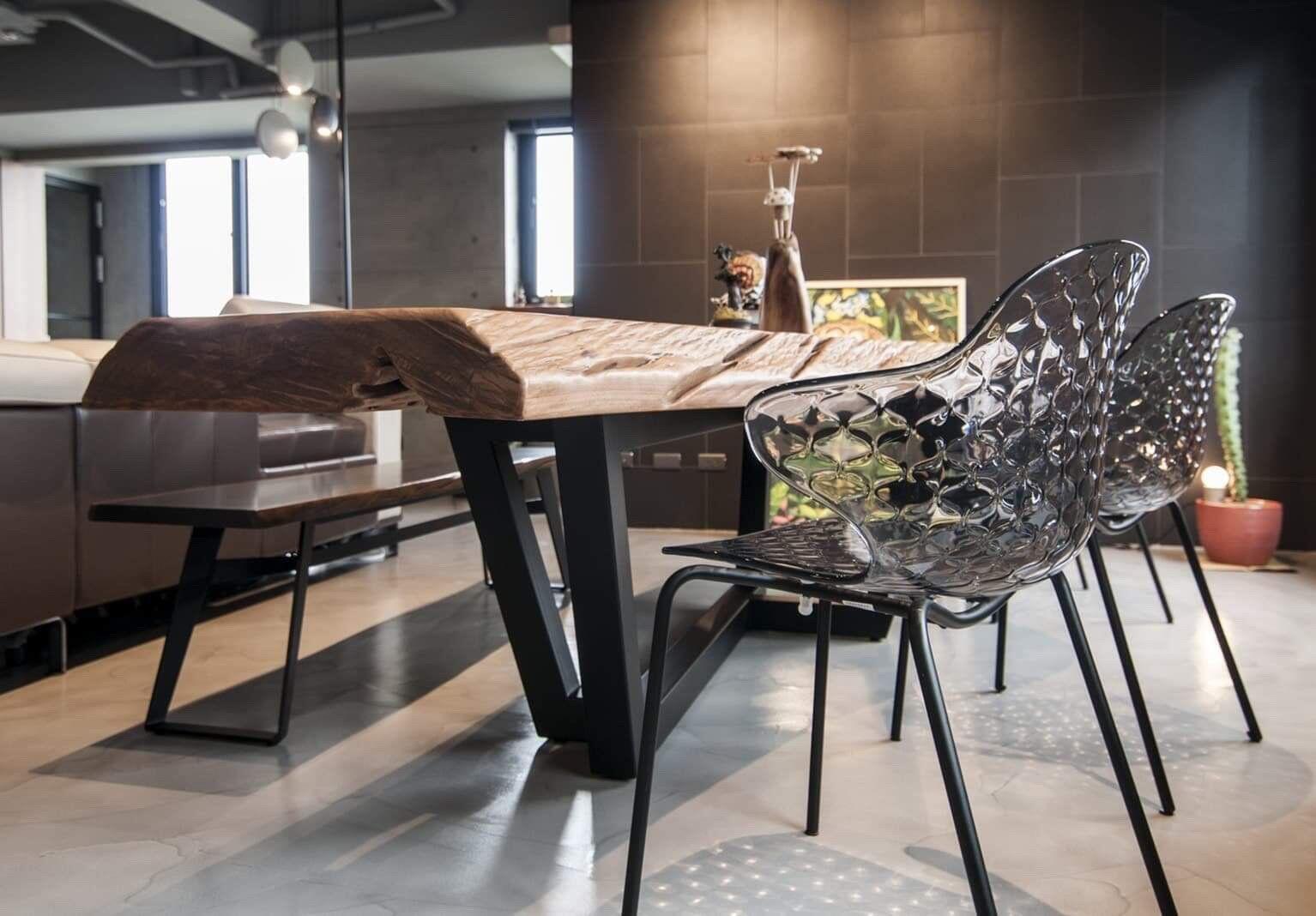 了解每片桌板特性跟尺寸,將不同樹種及顏色 完美融入這空間