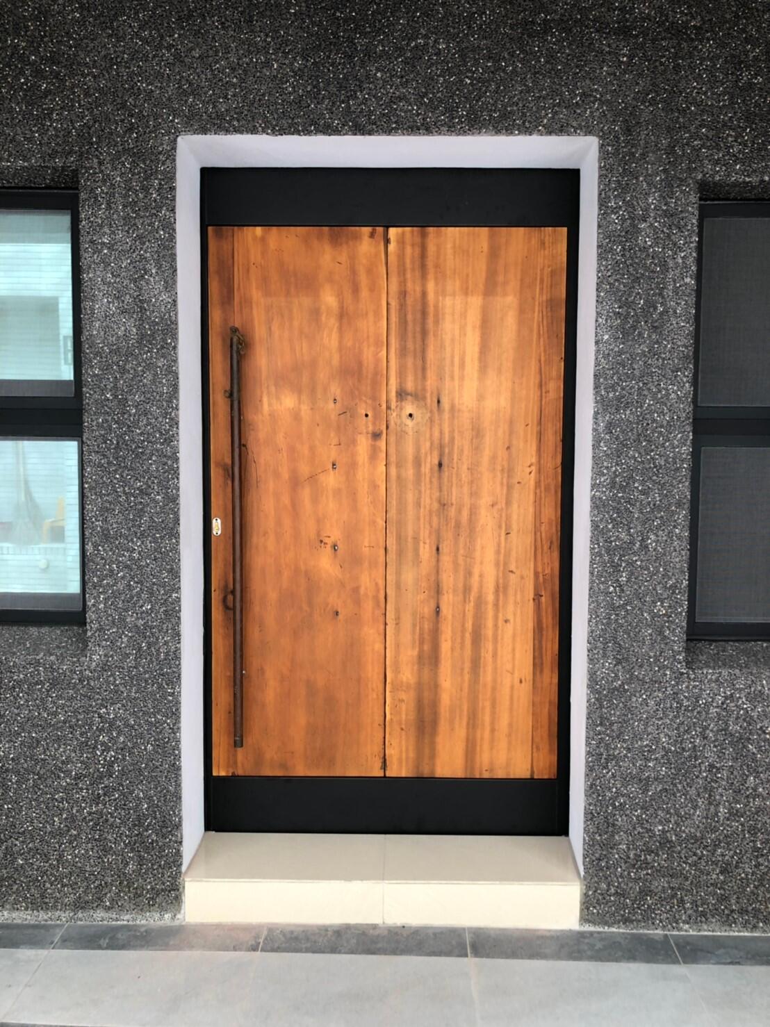 謝木木提供完全客制化的門服務,獨一無二的原木風貌,配上不銹鋼粉體烤漆