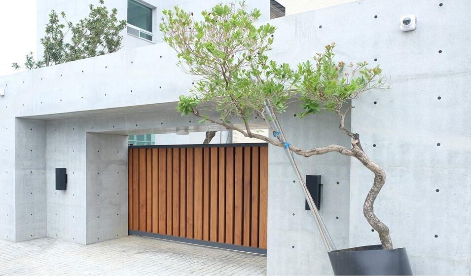 車庫門可以好看多變化,用對原木樹種也是可以好看又耐用喔!