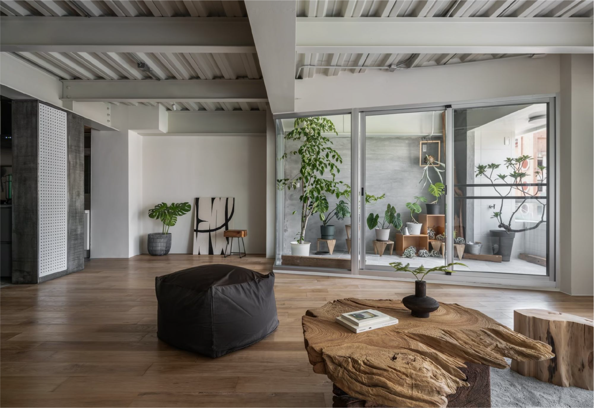 喜歡自然空曠,花費3年時間裝修這棟老華夏 室內坪數大,並保留空間感,希望大家都在公共空間生活,以廚房餐廳為中心來設計房子